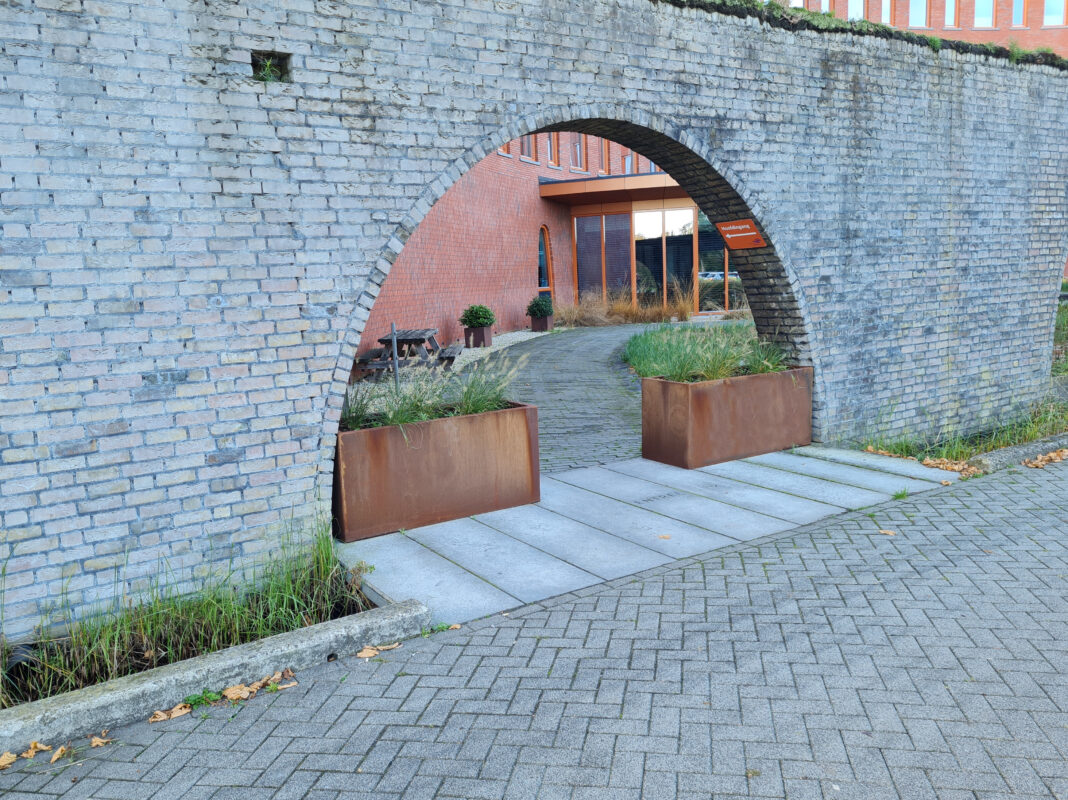 We hebben het natuurlijk over cortenstaal, een staalsoort die een beschermende roestlaag vormt. Cortenstaal stopt na verloop van tijd met roesten en de roestlaag die dan gevormd is, sluit het materiaal af van zuurstof en vocht. Dat maakt het materiaal ideaal voor toepassingen in de openbare ruimte.