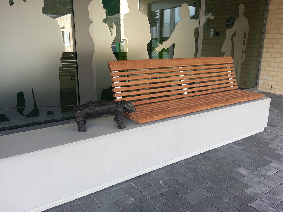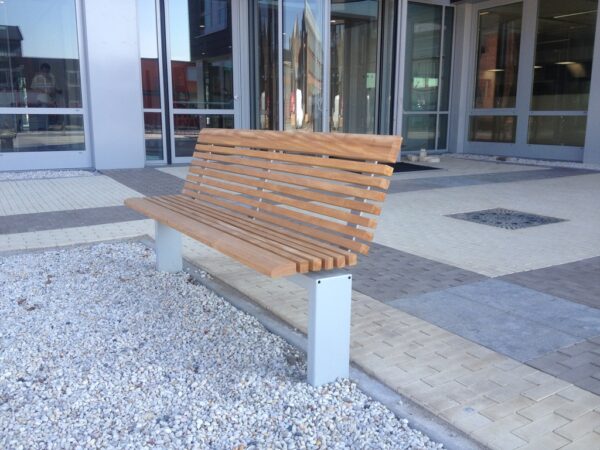 Voor een tweetal projecten is onze bankserie Fox op maat gemaakt voor een prefab betonnen onderconstructie. In plaats van de standaard bankpoten is hier gekozen voor korte staanders zodat de bank een geheel wordt met de betonnen onderconstructie. Uiteraard is deze bank ook met bankpoten leverbaar.