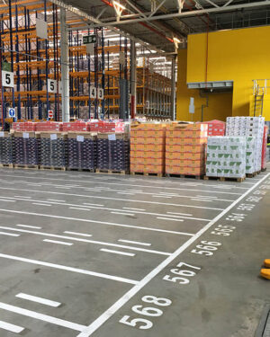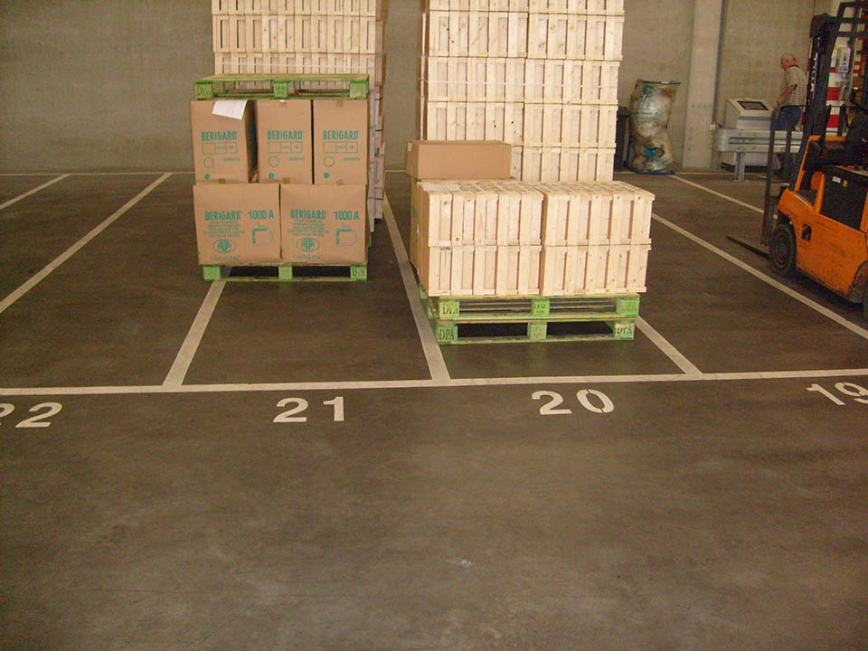 Opstelvakken voor pallets zorgen voor een gestructureerd magazijn waar de pallets in nette rijen staan opgesteld. De opstelvakken worden vaak voorzien van nummering.  De belijning wordt standaard in wit of geel uitgevoerd.
