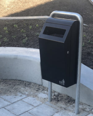 De 90 en 120 liter bakken zijn voorzien van inwerpopeningen aan beide zijden en standaard voorzien van aluminium profielstaanders. Daarnaast kan deze afvalbak worden geleverd in combinatie met een thermisch verzinkte boogbeugel die naar wens gepoedercoat kan worden.