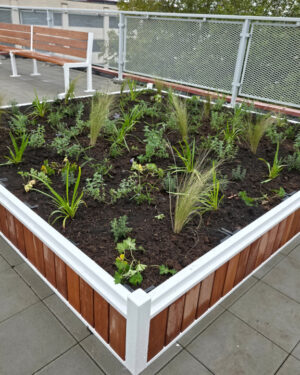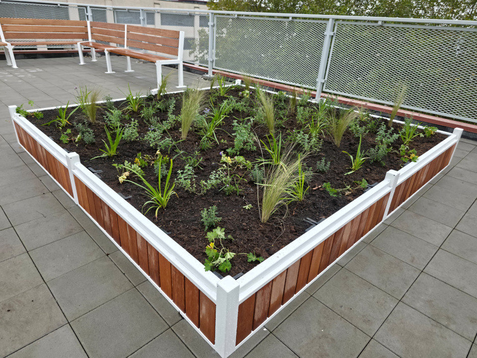 De bloembak Maatwerk is ontworpen door Metec en geproduceerd in onze werkplaats. Het frame van de bloembak is van thermisch verzinkt staal en de hardhouten latten maken de bloembak helemaal af. Ook is er de optie om de hardhouten latten te vervangen voor staalplaat.